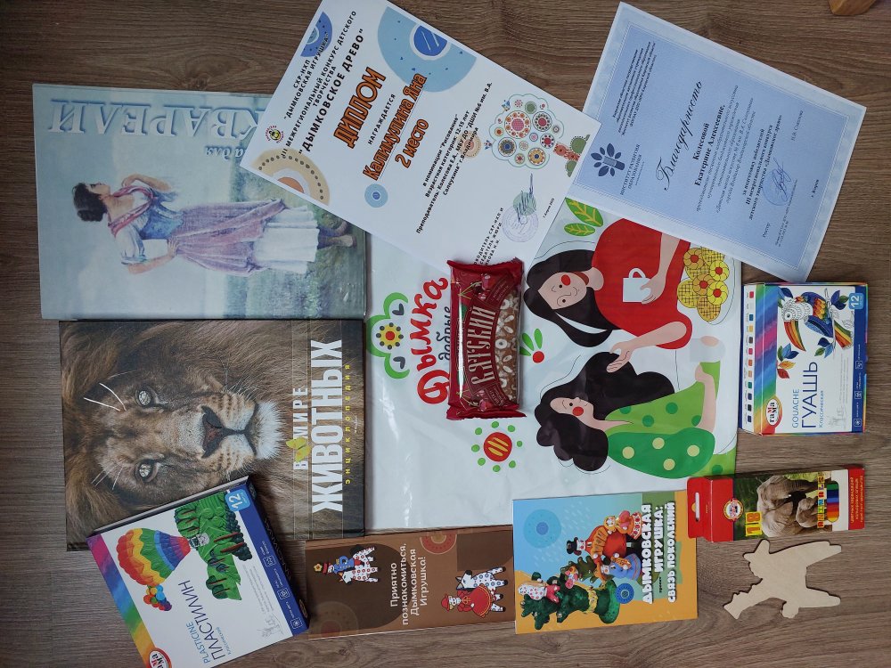 Дипломом 2 степени и подарком в номинации "Рисование" среди участников 12-15 лет награждена работа Калимулиной Яны "Натюрморт с Дымковской барышней" - учащейся преподавателя Колесовой Екатерины Алексеевны.