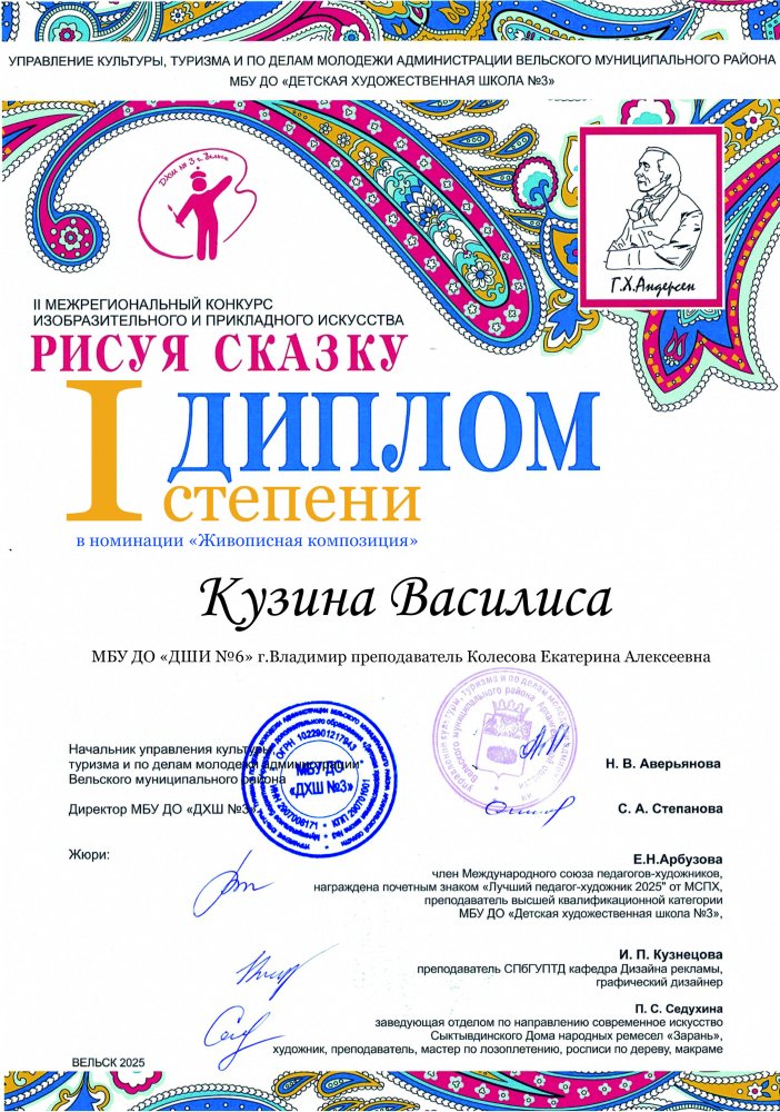 Учащиеся художественного отделения приняли участие в Межрегиональном конкурсе изобразительного и прикладного искусства "Рисуя сказку".