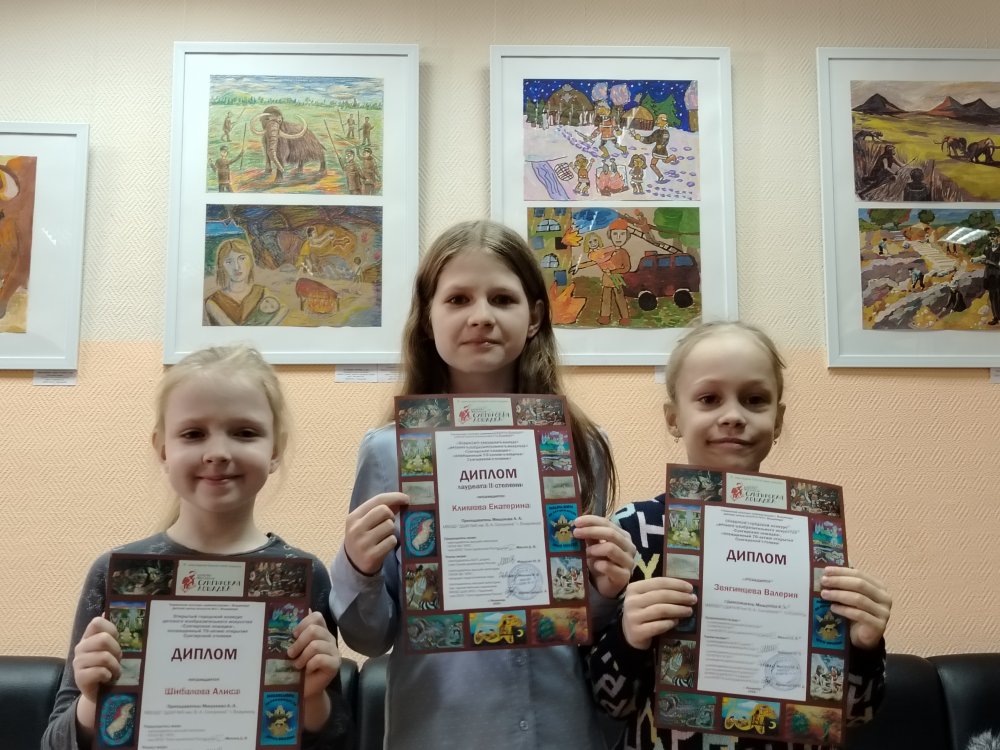 Активное участие в конкурсе приняли юные художники ДШИ №6 от 8 до 17 лет под руководством преподавателей Лещёвой В.А., Егоровой Н.В., Мишуковой А.А., Терентьевой В.Е. В течении года они изучали историю Сунгирской стоянки, слушали лекции, посещали тематические выставки, встречались с археологами. Всё было сделано для того, чтобы как можно точнее раскрыть темы конкурса.