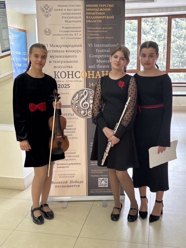 14-18 апреля в г. Владимире проходил VI Международный фестиваль-конкурс музыкального и театрального искусства "Консонанс". В номинации "Великой победе посвящается" инструментальное трио (Чирикина Анна, Прокопьева Злата, Кулик Евгения) стало лауреатом 2 степени. Поздравляем педагогов и учеников с победой! Желаем дальнейших успехов!