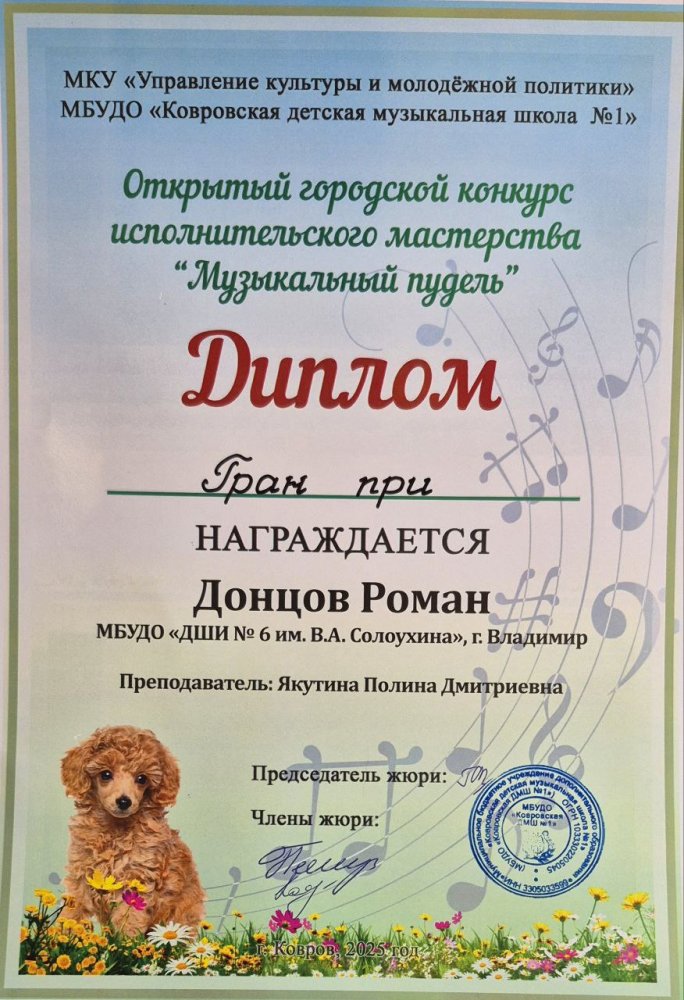 Поздравляем наших гитаристов с победой в замечательном конкурсе "Музыкальный пудель"!