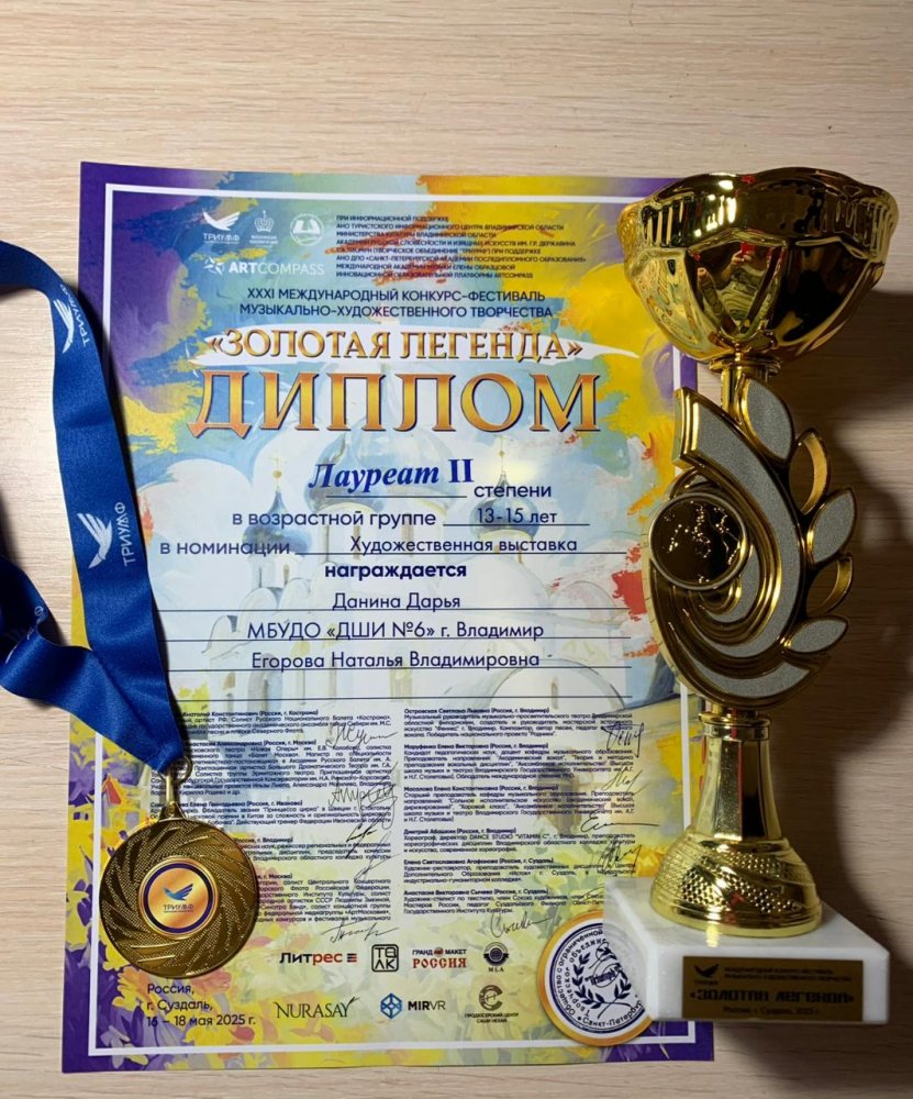 Учащаяся художественного отделения Данина Даша (преподаватель Егорова Наталья Владимировна) приняла участие в XXXI Международном конкурсе-фестивале, организованном творческим объединением «Триумф», и проводившимся при поддержке Министерства культуры Владимирской области, Международной Академии Музыки Елены Образцовой и АНО ДПО «Санкт-Петербургская Академия последипломного образования и заняла почетное 2 место! Поздравляем талантливую ученицу и преподавателя и желаем дальнейших творческих успехов!