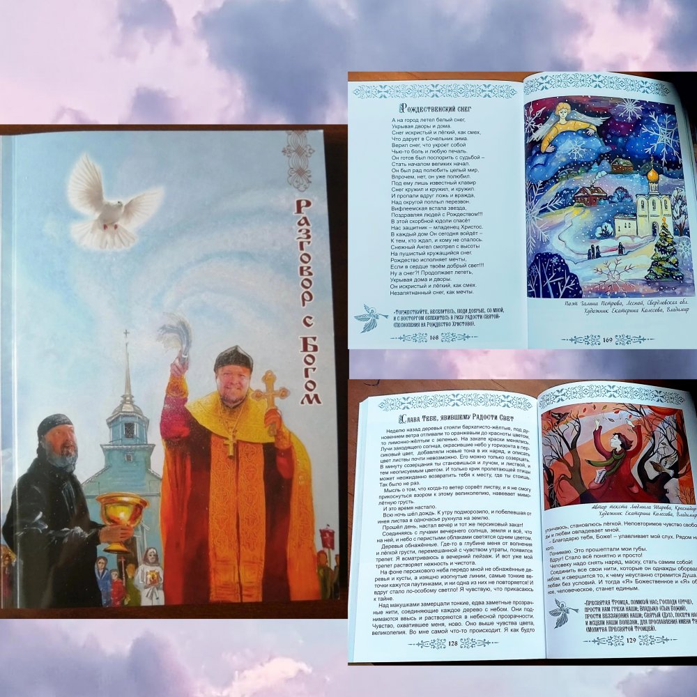 Для иллюстрирования сборника "Разговор с Богом" Екатерина Алексеевна выбрала рассказ писательницы из Краснодарского края Людмилы Шаровой - «Слава Тебе, явившему радости Свет" и стихотворение Галины Петровой из г. Лесного (Свердловская область) "Рождественский снег".