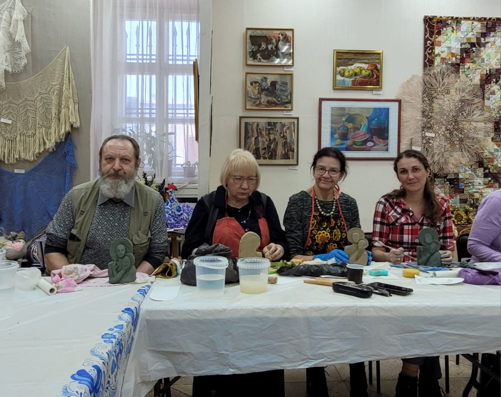 Преподаватели работали с глиной, создавая образ семьи с Марией Сергеевной Тепловой-Зайцевой – очень интересный вариант работы от целого, отсекая лишнее. Условность, силуэтность – характеристики изображения, получающегося в ходе такого процесса.