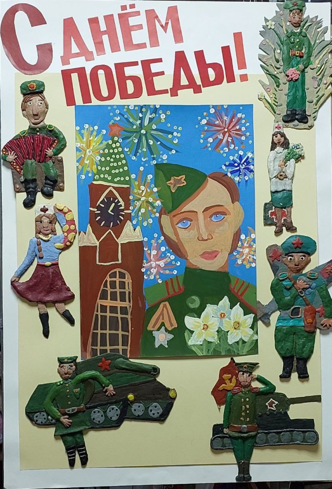 Это работы юных художников (7-9 лет) нашей школы искусств №6 г.Владимира. Под руководством преподавателей ребята лепили и рисовали героев специально к этому празднику - 80-летию Победы.