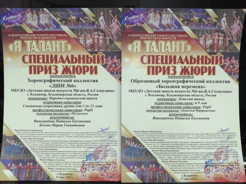 А так же коллектив "Большая перемена" и коллектив "ДШИ №6" получили Спец приз от жюри!