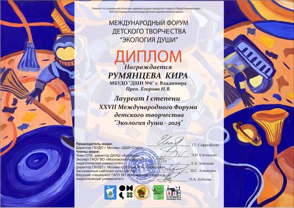В Калининграде жюри подвело итоги XXVII Международного конкурса детского творчества «Экология души – 2025». В конкурсе принимали участие обучающиеся в детских школах искусств, детских художественных школах, домах творчества, студиях изобразительного искусства регионов РФ и зарубежных стран.