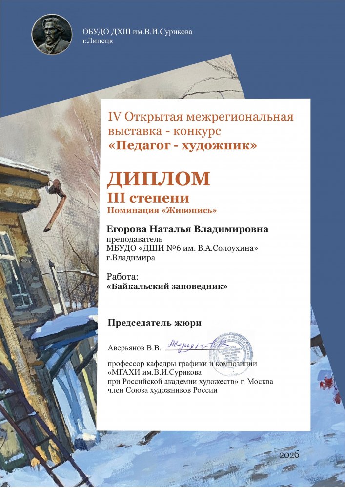 Егорова Наталья Владимировна получила диплом 3 степени,