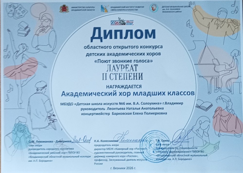Поздравляем ребят и желаем дальнейшего исполнительского роста. Благодарим руководителя хорового коллектива Н.А. Леонтьеву и концертмейстера Е.П. Барковскую за подготовку Лауреата.