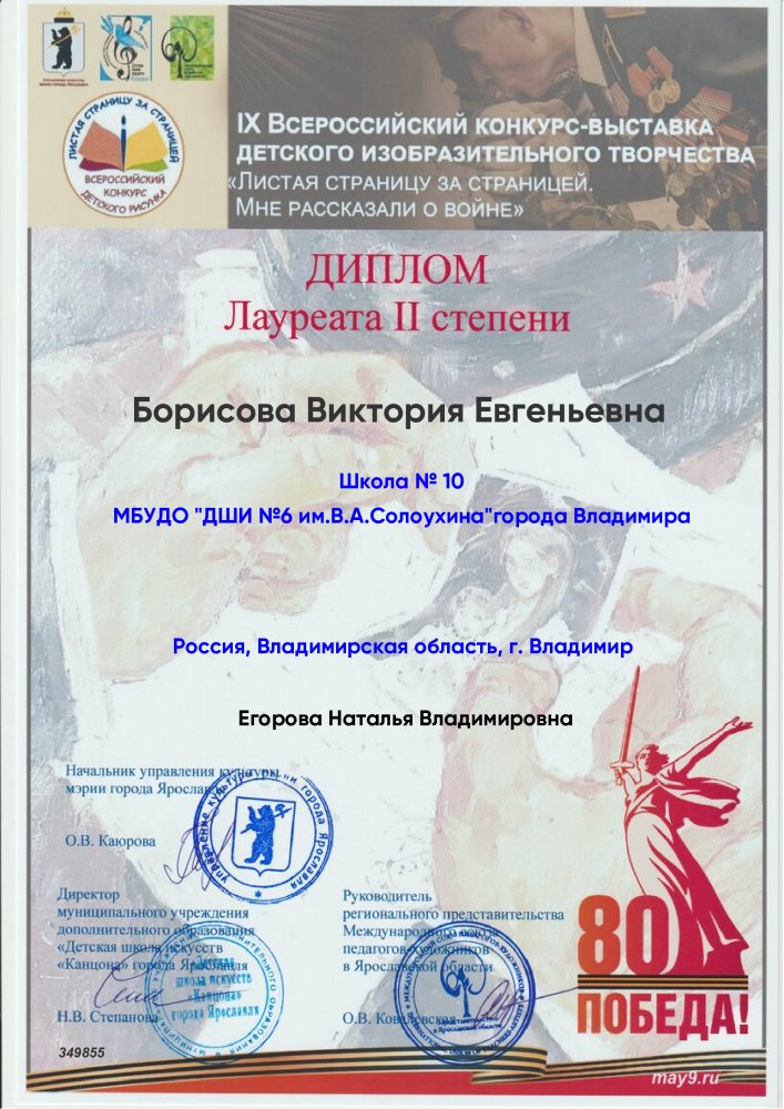 Лауреат 2 степени - Борисова Вика(преподаватель Егорова Наталья Владимировна)