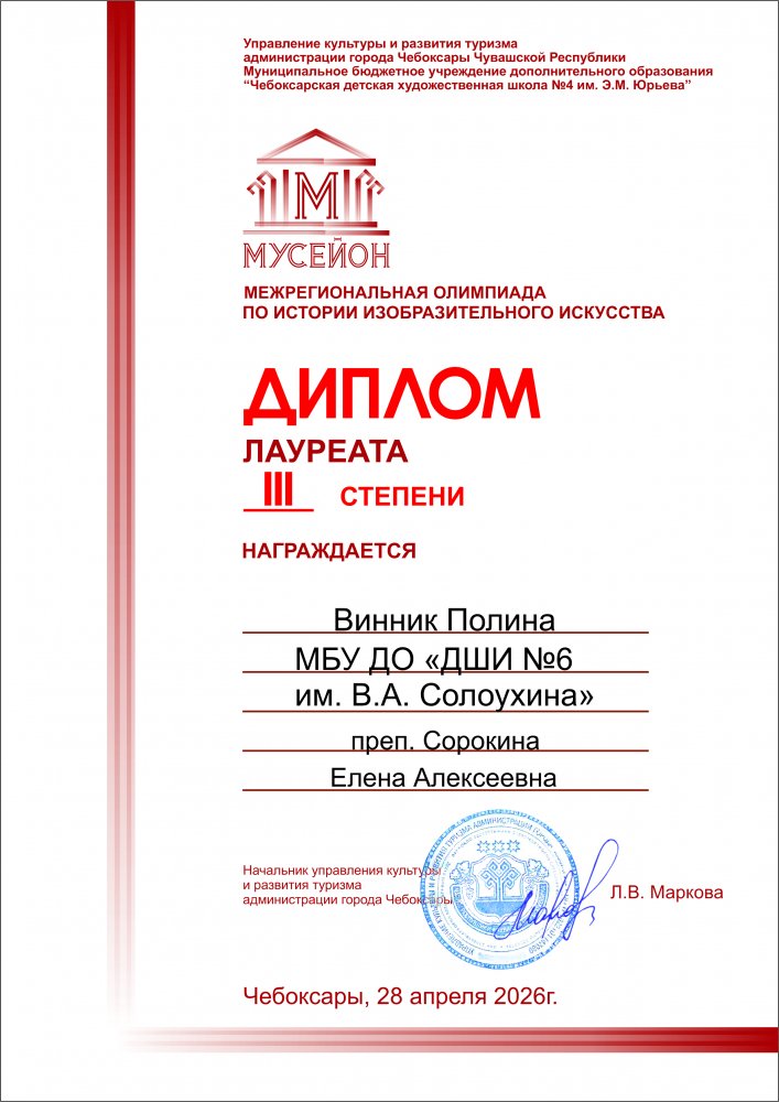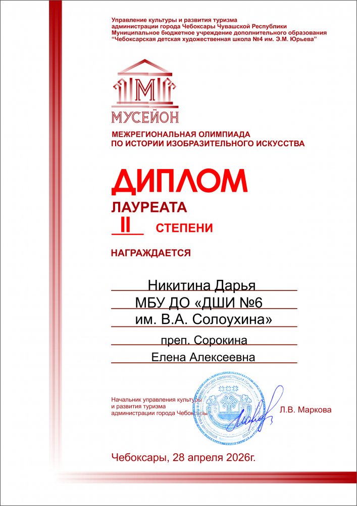 Учащиеся ДШИ № 6 — призёры XII Межрегиональной олимпиады по истории изобразительного искусства «МУСЕЙОН»