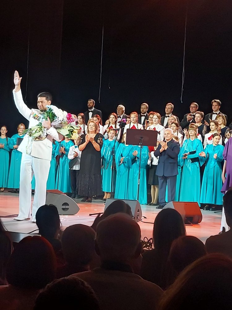 Детям посчастливилось выступить в составе сводного хора с именитым профессиональным коллективом – хором «Распев» под управлением маэстро Натальи Александровны Колесниковой. В концерте звучали песни объединяющие поколения, прививающие детям настоящие правильные ценности, воспевающие подвиг всех тех, кто непомерной ценой добыл Великую Победу.