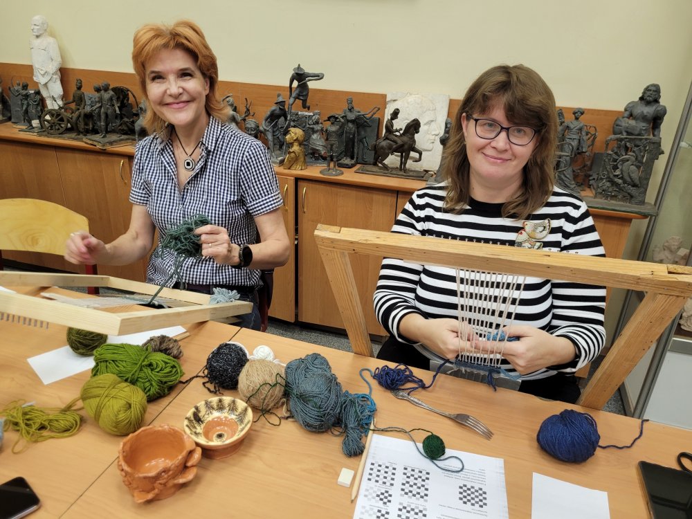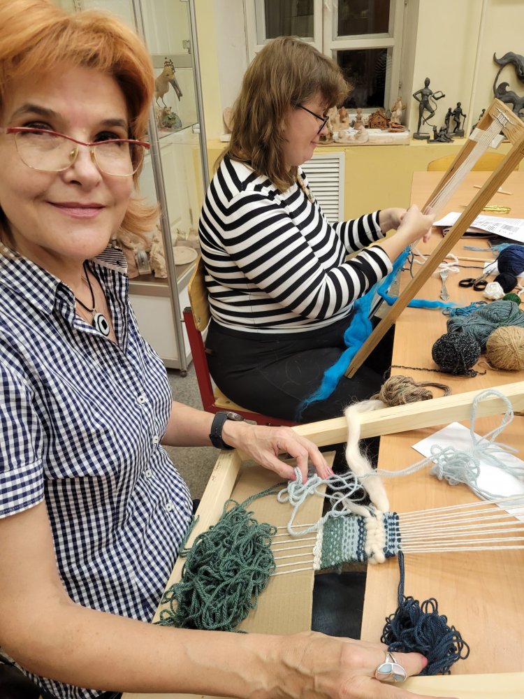 Преподаватели ДШИ №6 им. В.А. Солоухина Егорова Наталья Владимировна и Сорокина Елена Алексеевна приняли участие в этом курсе, соткали образцы с использованием разных видов полотняного переплетения. Участие в этом мастер-классе стало своеобразным продолжением темы гобелена и декоративно-прикладного творчества после посещения шикарной выставки Татьяны Гребневой «У ИСТОКА. Гобелен. Батик. Костюм».