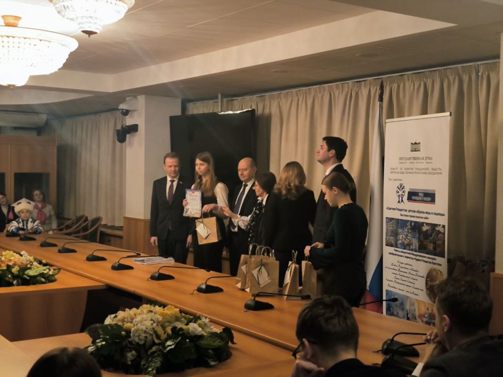 В этот же день, 20 января состоялась церемония награждения участников выставки и участников конкурса руководителями Комитета и Депутатов Государственной Думы РФ. Вика получила Грамоту в знак признания творческих достижений от Председателя комитета по развитию гражданского общества, Благодарность от депутата Государственной Думы Федерального собрания РФ и памятные подарки.
