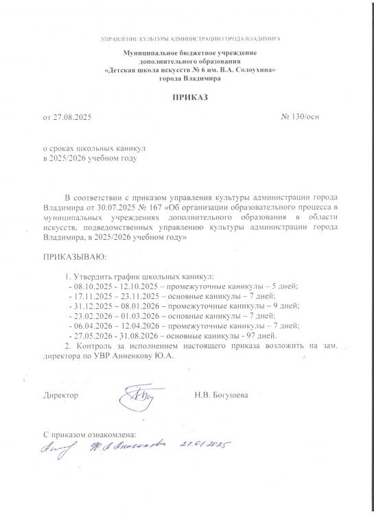 План работы МБУДО «ДШИ №6» на январь 2026 года