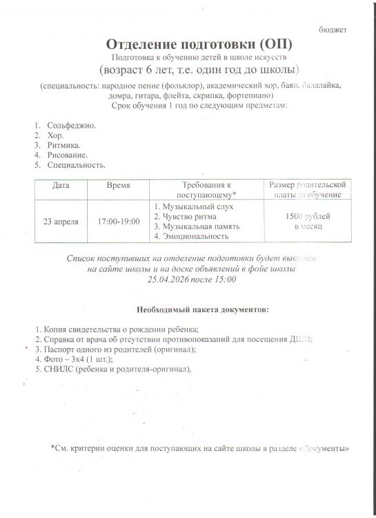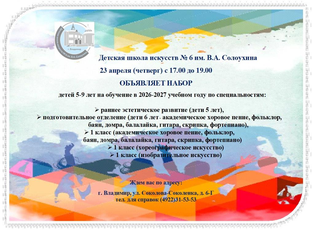 ДШИ №6 объявляет набор уч-ся на 2026-2027 учебный год.